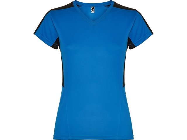 Женская футболка с коротким рукавом. V-образная горловина. Комбинация из 2 полотен контрастного цвета: структурное полотно на полочке и дышащая 3D сетка на плечах и боках.