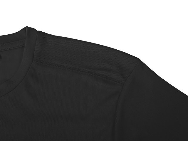 Мужская спортивная футболка выполнена из двух разных видов полотна: спинка и перед из интерлока имеют гладкую поверхность, а декоративные вставки выполнены из спортивной сетки ячеистой структуры. Благодаря наличию таких вставок воздух свободно проникает под футболку, охлаждая кожу во время спортивных нагрузок.