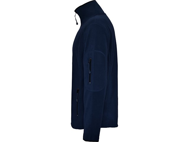 Куртка из микрофлиса с высоким воротом. Контрастная центральная молния, боковые карманы на молнии, декоративная молния на левом рукаве, отделка резинкой по краю рукавов. Налокотники из основного материала.