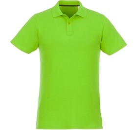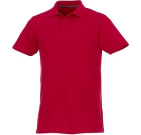 Мужское поло Helios с коротким рукавом. Отрезной-отрывной ярлык для комфорта. Воротник гладкой вязкой в рубчик. Планка с двумя пуговицами. Двойная строчка на воротнике и внизу изделия. Пуговицы в цвет изделия. Полоска на горловине в контрастном цвете. Трикотаж Piqué, 100 % хлопок. 180 г/м².