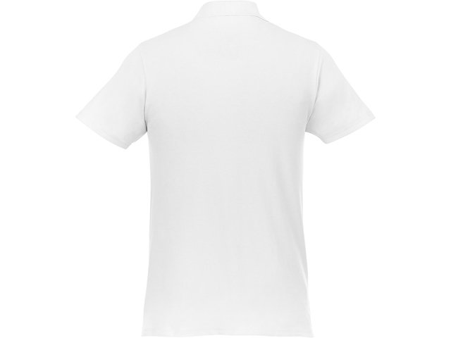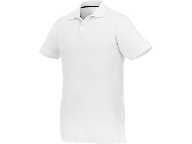 Мужское поло Helios с коротким рукавом. Отрезной-отрывной ярлык для комфорта. Воротник гладкой вязкой в рубчик. Планка с двумя пуговицами. Двойная строчка на воротнике и внизу изделия. Пуговицы в цвет изделия. Полоска на горловине в контрастном цвете. Трикотаж Piqué, 100 % хлопок. 180 г/м².