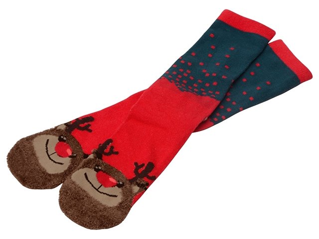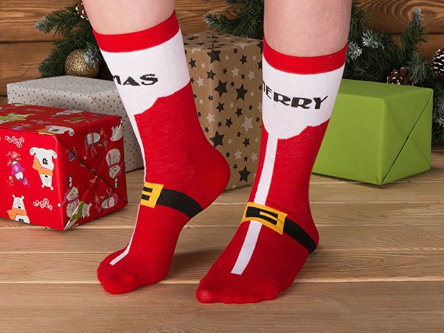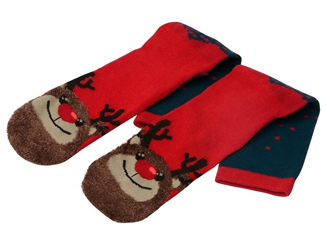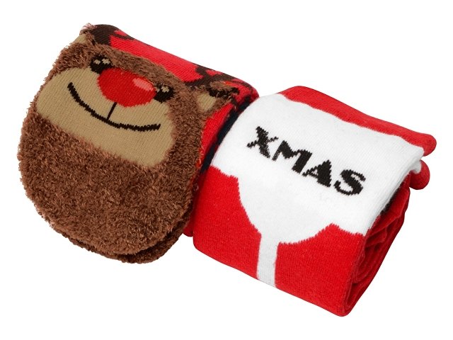 Рождественские носки прекрасно подойдут на роль подарка, который создает праздничное настроение. Этот набор состоит из двух пар, которые упакованы в мешочек из натурального хлопка. Одна пара украшена мягкими пушистыми мордочками рождественских оленей, а принт на второй изображает сапожки Санта Клауса. Ткань -- смесь хлопка, полиэстера и спандекса, что обеспечивает носкам износостойкость, а мягкая широкая резинка – удобную посадку по ноге. Мешочек-упаковку можно брендировать по вашему желанию.