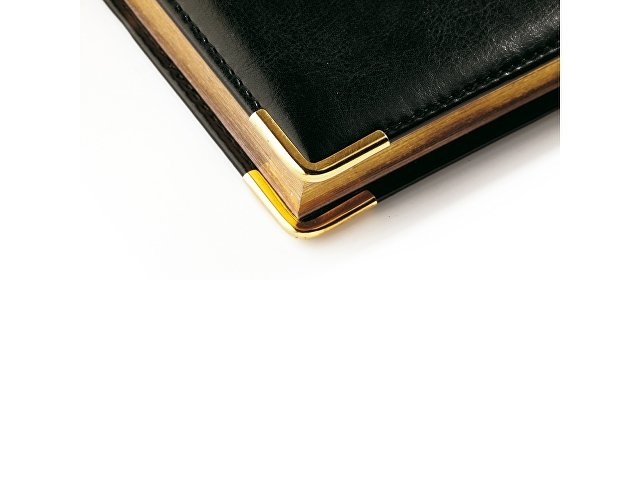 Классический деловой ежедневник линии Boss – образец элегантности. Гладкую тонкую фактуру экокожи подчеркивает декоративная строчка по контуру и металлические закругленные уголки золотистого цвета.