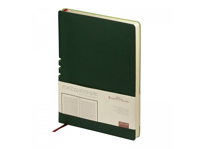 Этот ежедневник вдохновлен солнечными днями и томными ночами Мадрида. И как этот великий город он лишь намекает снаружи на свои тайны. Так, вырубка на спинке – это удобная петля для ручки. Пользоваться этим секретом – одно удовольствие. Недатированный ежедневник Madrid от Bruno Visconti исполнен в благородном зеленом цвете. Гибкая обложка с покрытием Soft-Touch. Бордовое ляссе выгодно прекрасно сочетается со скругленной обложкой и бежевым блоком. Для изготовления данного ежедневника использована бумага плотность 70 г/м. Справочная информация на 17 страницах. Ежедневник упакован в картонный полукороб и термопленку.