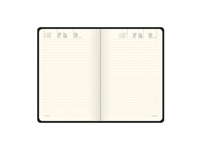Скругленный угол обложки и блока, обрез окрашен в тон черной обложке. Покрытие обложки Soft Touch. Великолепная бумага 70 г/м. Скрытый магнит для металлической ручки. Ежедневник упакован в картонный полукороб и термопленку.