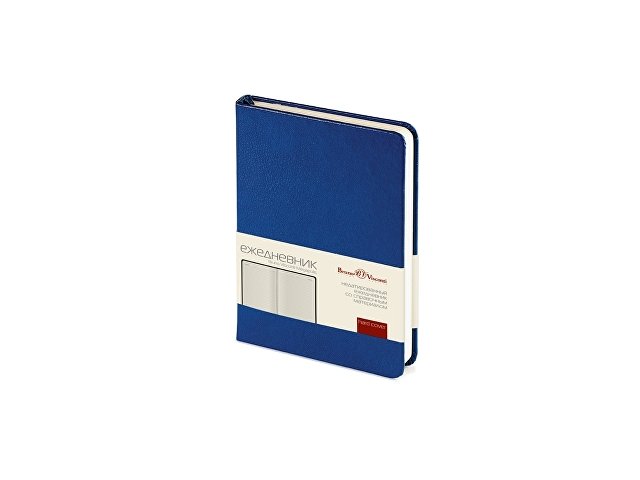 Строгий офисный дизайн, классический долговечный переплетный материал с гладкой фактурой - безусловные преимущества этих корпоративных моделей. Синяя обложка с закругленными уголками станет отличной основой для Вашего фирменного логотипа. Недатированный ежедневник выпускается в формате А6, что соответствует размерам 87*131. Блок включает 200 страниц из бежевой высококачественной бумаги плотностью 70 грамм. Первые 8 листов отведены под справочную информацию. Восемь последних листов снабжены микроперфорацией, гарантирующей аккуратную линию отрыва. Под обложкой расположена шелковая закладка-ляссе бордового цвета.