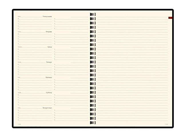 Недатированный блок состоит из 128 страниц, укреплённых на пластиковом полускрытом гребне. На 21 странице размещена справочная информация на русском языке. День недели указан на русском и английском языках.