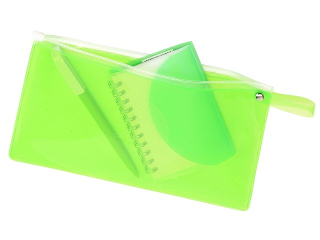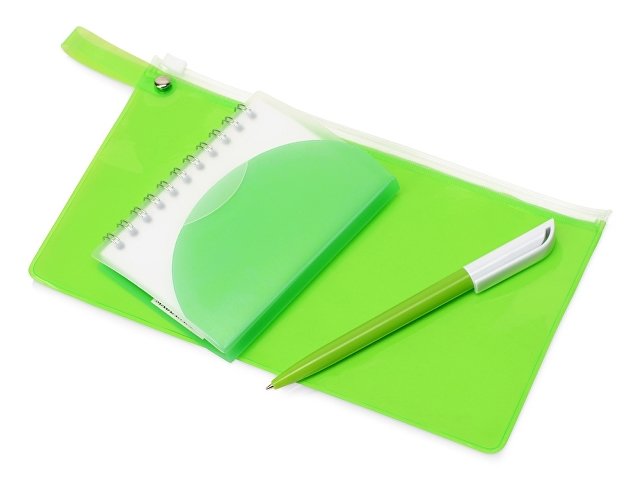 Цвет товара: блокнот- прозрачный/зеленое яблоко, ручка- зеленое яблоко/белый, пенал- зеленое яблоко прозрачный