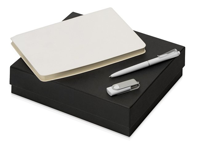 Цвет товара: блокнот- белый, флешка- белый/серебристый, ручка- белый