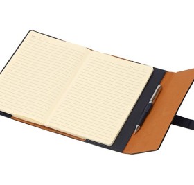 Бизнес-блокнот формата А5 в твердой обложке из искусственной кожи с ручкой в тон станет отличным подарком для любого клиента. Блокнот состоит из обложки с клапаном и сменного блока с линованными страницами.