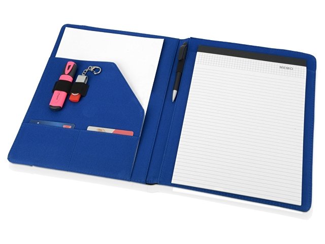 Папка позволит не только аккуратно перевозить необходимые документы, но и своевременно делать заметки во время переговоров благодаря блокноту на 20 листов. Отличная идея для подарка сотрудникам организации.