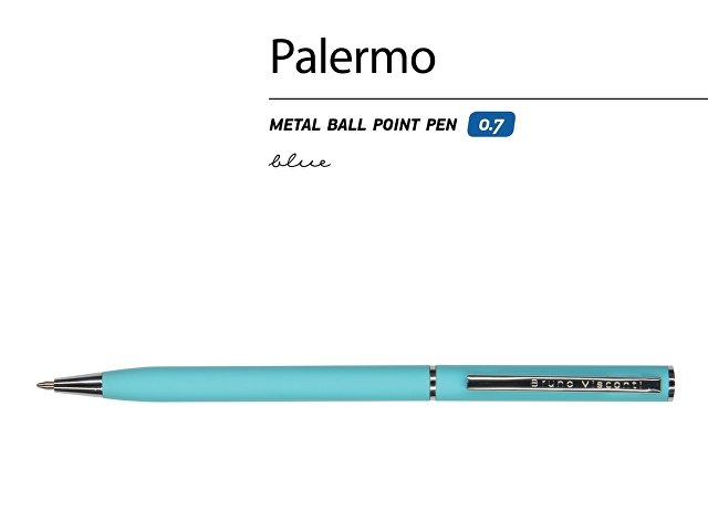 Ручка "Palermo" шариковая автоматическая, бирюзовый металлический корпус, 0,7 мм, синяя