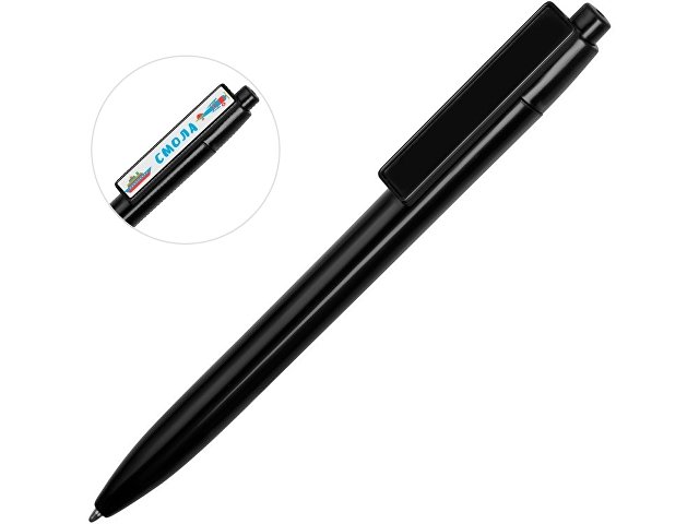 Пластиковая ручка, дизайн клипа которой разработан специально для персонализации в виде заливки смолой. Ручка с этим видом нанесения смотрится особенно эффектно благодаря объемной форме и глянцевому блеску.
