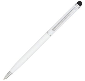 Алюминиевая шариковая ручка Joyce. Тонкая алюминиевая шариковая ручка с поворотным механизмом и стилусом. Алюминиевый корпус с металлическим зажимом и кольцом посередине, остальные элементы из пластика.