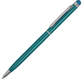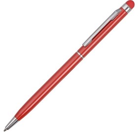 Тонкая металлическая шариковая ручка с поворотным механизмом и стилусом. Функциональный и стильный аксессуар станет отличным подарком.