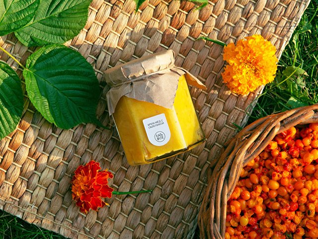 Состав: крем мед, облепиховый сок, фруктовая добавка "ягода спелой облепихи"