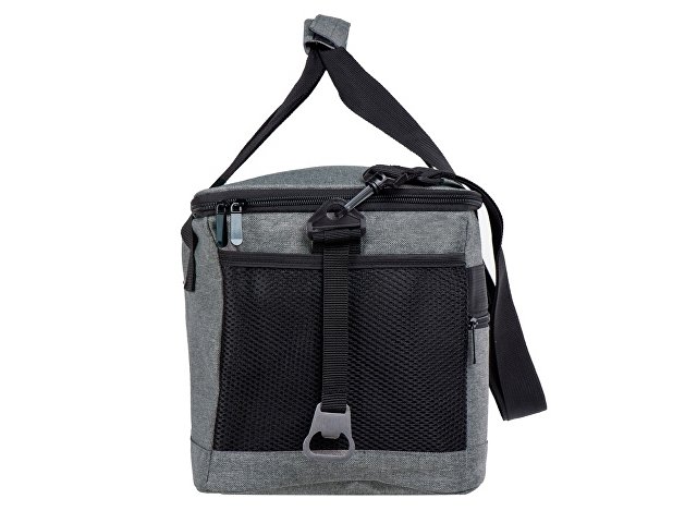 Вместительная сумка-холодильник со специальной конструкцией дна, предотвращающей протекание наружу жидкости от размораживания. Поверхность сумки всегда остается сухой. Основное отделение и карман спереди на молнии. Сбоку 2 сетчатых кармана. Съемный плечевой ремень регулируется по длине. Короткие ручки фиксируются вместе застежкой-липучкой. В комплекте открывалка для бутылок.