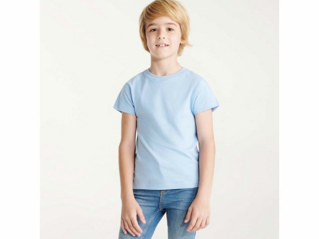 Детская футболка с коротким рукавом с отделкой по горловине двойным рибом с эластаном. Футболка с боковыми швами. Широкая палитра цветов.