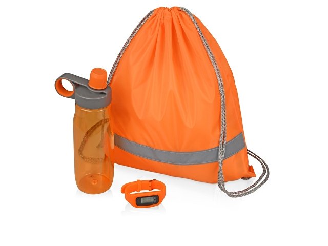 Комплектность: рюкзак-мешок, бутылка для воды 650 мл, смарт часы с шагомером