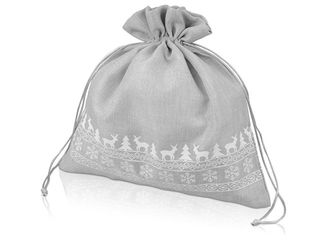 Мешочек подарочный новогодний, хлопок, большой, серый