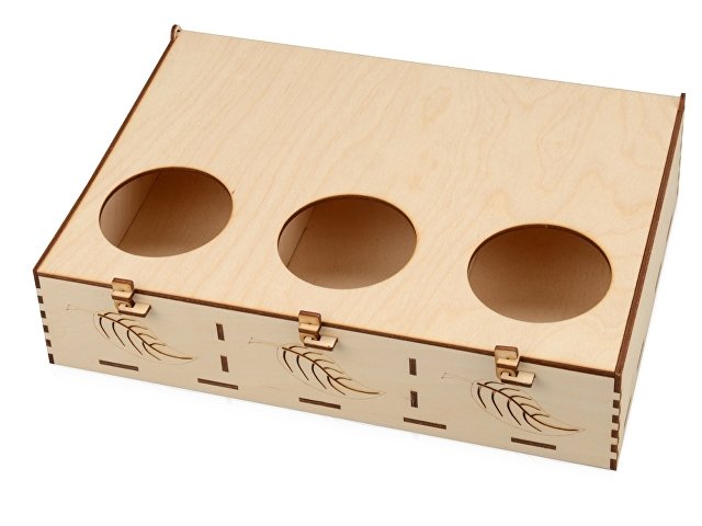 Подарочная коробка из трех секций, украшенная экопринтом в виде листа растения. В крышке над каждой из секций есть отверстие, чтобы можно было рассмотреть содержимое. Коробка выполнена из березовой фанеры и отлично гармонирует с наполнителем из крафтовой бумаги. Хотите нестандартно украсить подарок? Упакуйте его в подарочную коробку «Лист», она сохранит его содержимое в целости и сохранности.