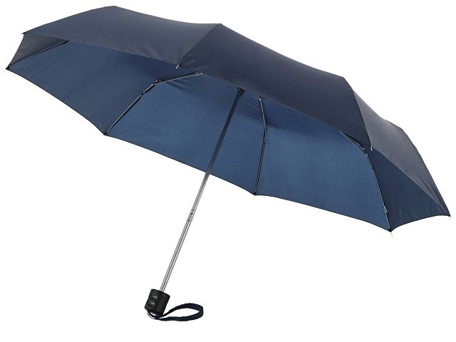 Зонт Ida трехсекционный 21,5". Зонт 21,5" с металлическим стержнем и спицами и пластиковой ручкой. В комплекте чехол. Полиэстер.