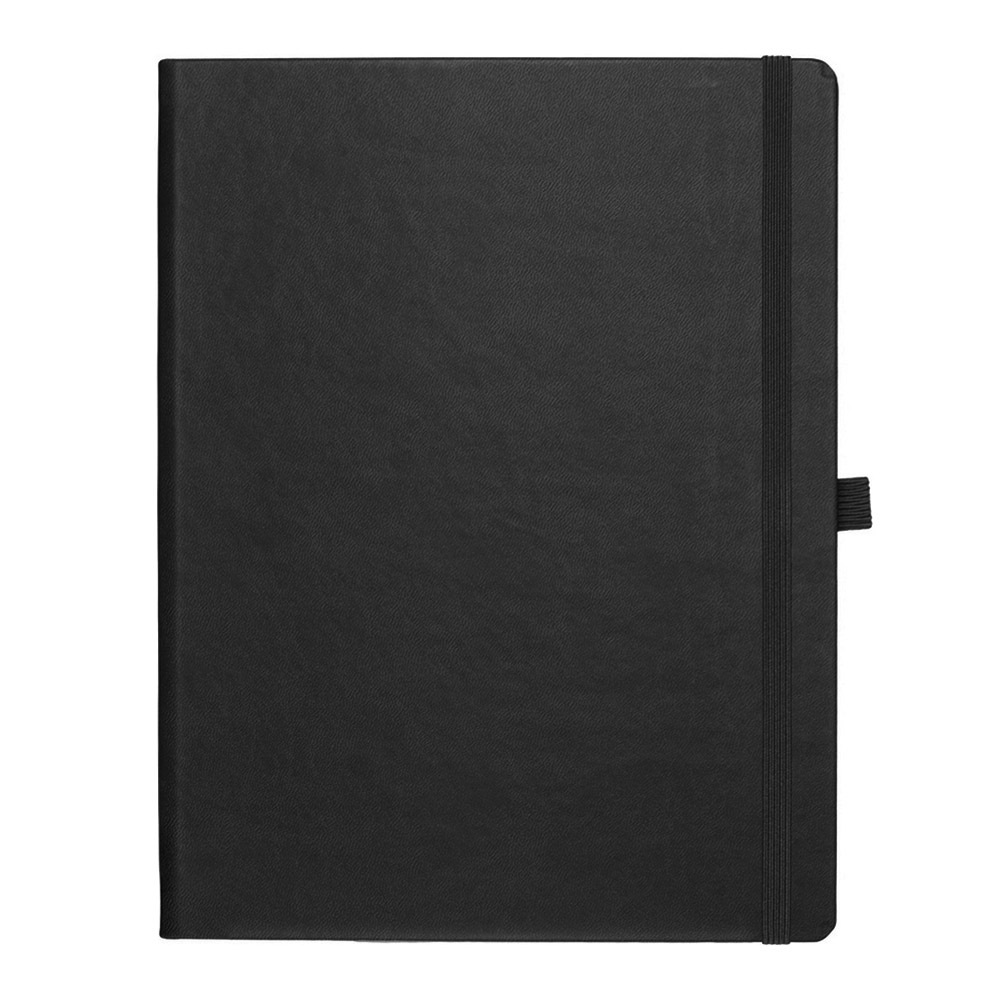 Блокнот PRINT А4; внутр.формат 19х25 см; 192 страниц, кремовая бумага 80 г; сертифицирована FSC; Печать в 1+1 цвет, все страницы пронумерованы; Шитый блок; Форцазы из черной дизайнерской бумаги 140 гр FSC; Карман из черной дизайнерской бумаги; Резинка 8 мм в тон обложки; Петля для ручки в тон обложки; Ляссе в тон обложки; Гибкая обложка из высококачественного итальянского кожзама; Обладает свойствами термоэффекта при слепом тиснении