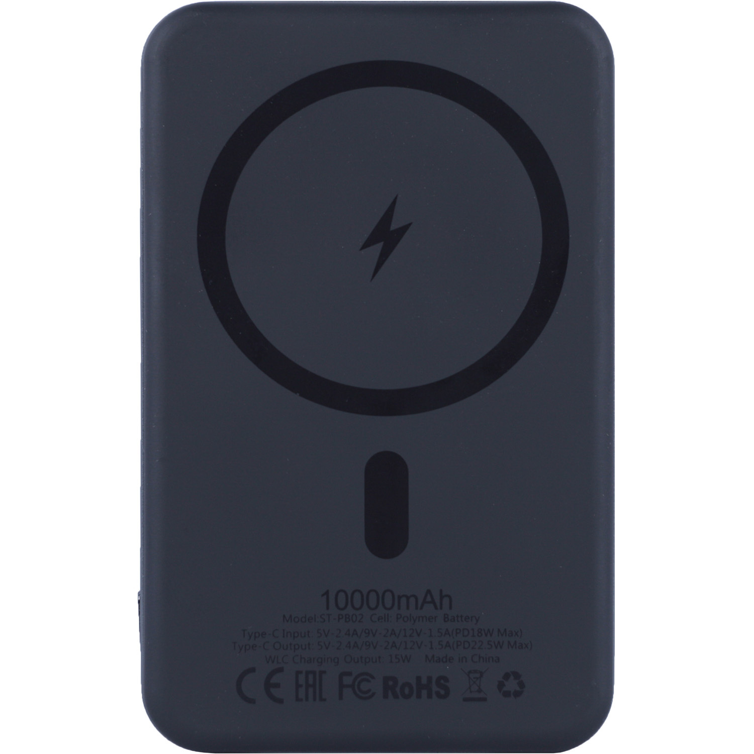 Ёмкость: 10000mAh; Tupe C вход: 5V=2A/ 9V=2A; Type C выход: 5V=2,4A, 9V=2.22A, 12V/1.67A, 20W (Max). Беспроводная зарядка: 15W, 10W, 7,5W, 5W. Размер: 106x66x139 мм. Материал: Алюминий, ABS. Размер индивидуальной упаковки: 117х95х23 мм.