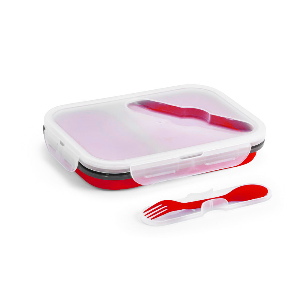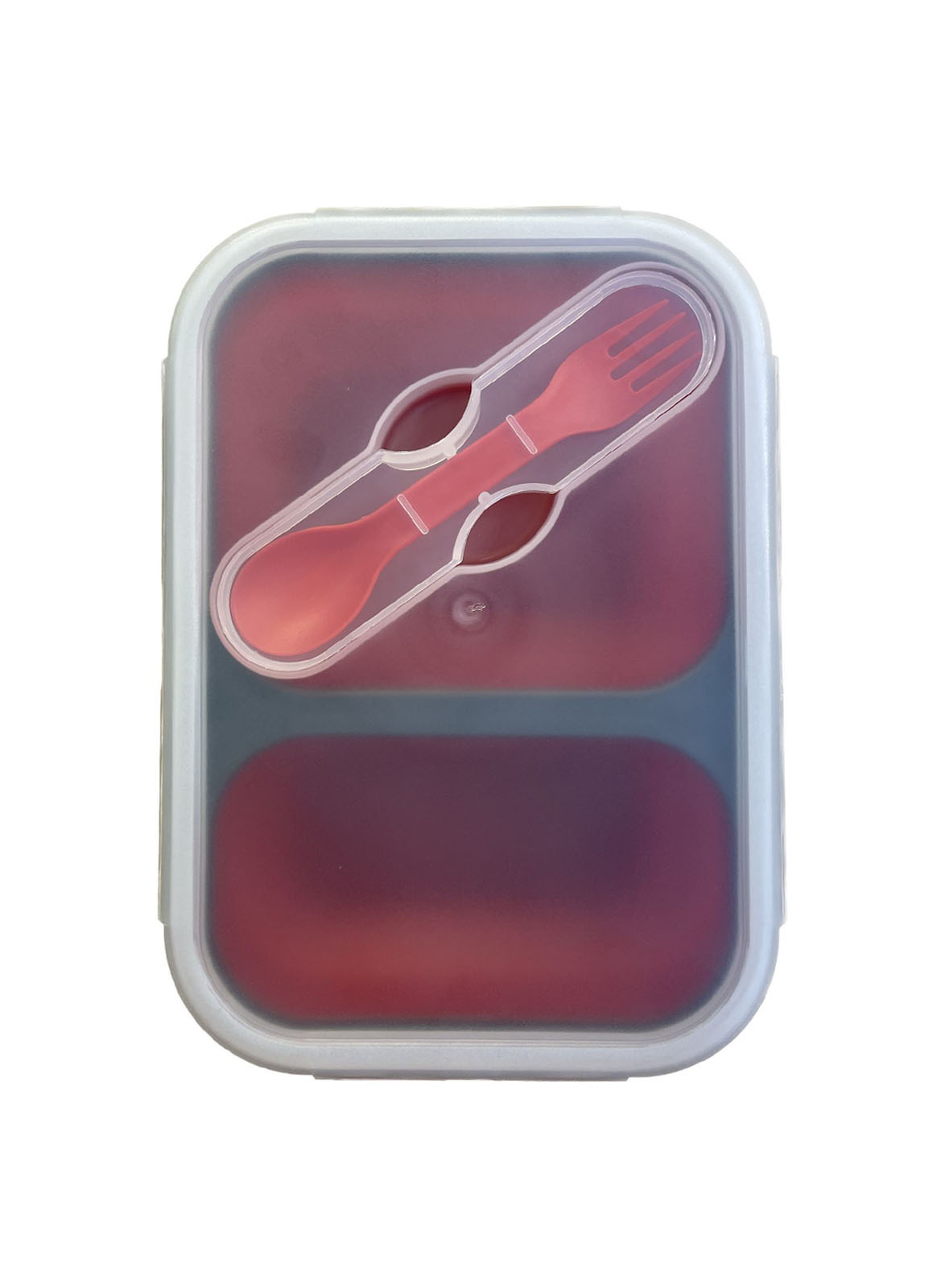 Герметичный выдвижной ящик из силикона и полипропилена с двумя отделениями емкостью до 480 мл и 760 мл. Вверху крышки находится штуцер со столовыми приборами (в комплекте) с функцией 2 в 1, вилкой и ложкой. Коробка подходит для микроволновой печи, крышка должна быть снята. 212 x 153 x 73 мм | Изгиб: 212 x 153 x 38 мм