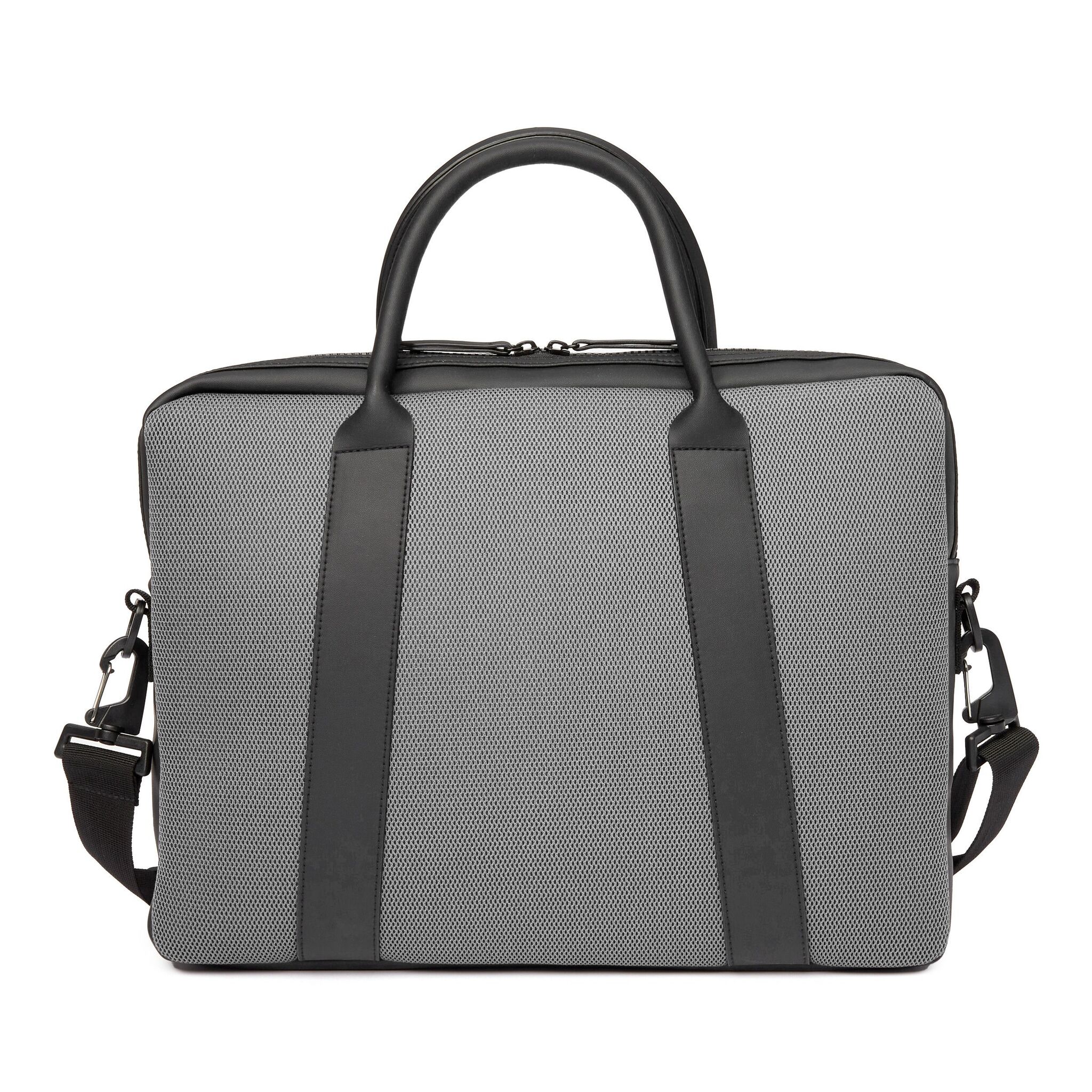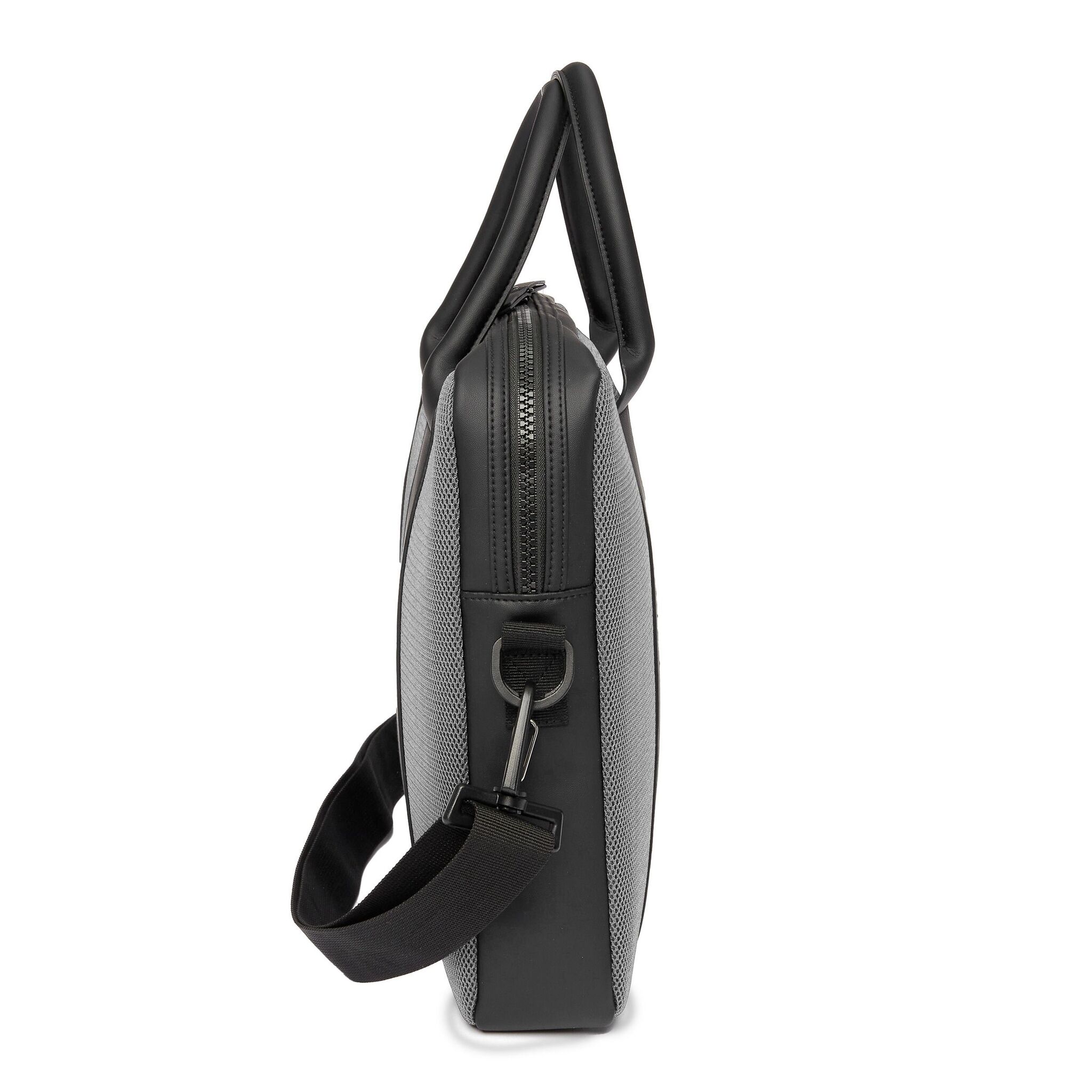 Представляем нашу инновационную линию Mesh Travel Line — комплексную коллекцию, разработанную для современных путешественников. Изготовленная из ультрасовременной сетчатой ткани, вдохновленной спортивной одеждой и заимствованной из производства кроссовок, эта линия предлагает практичные и современные вещи. Каждая вещь украшена тисненым, большим, но изящно размещенным логотипом, красиво отделанным матовыми гладкими текстурами (ПУ). Примите современную и активную атмосферу с большими черными молниями и матовыми черными акцентами. Эта линия одновременно современная и высокофункциональная, с легкими предметами для удобства путешествий. Эта сумка для документов компактна и позволяет идеально организовать все необходимое, благодаря специальному отделению для ноутбука, доступному в темно-синем, черном или сером цветах.