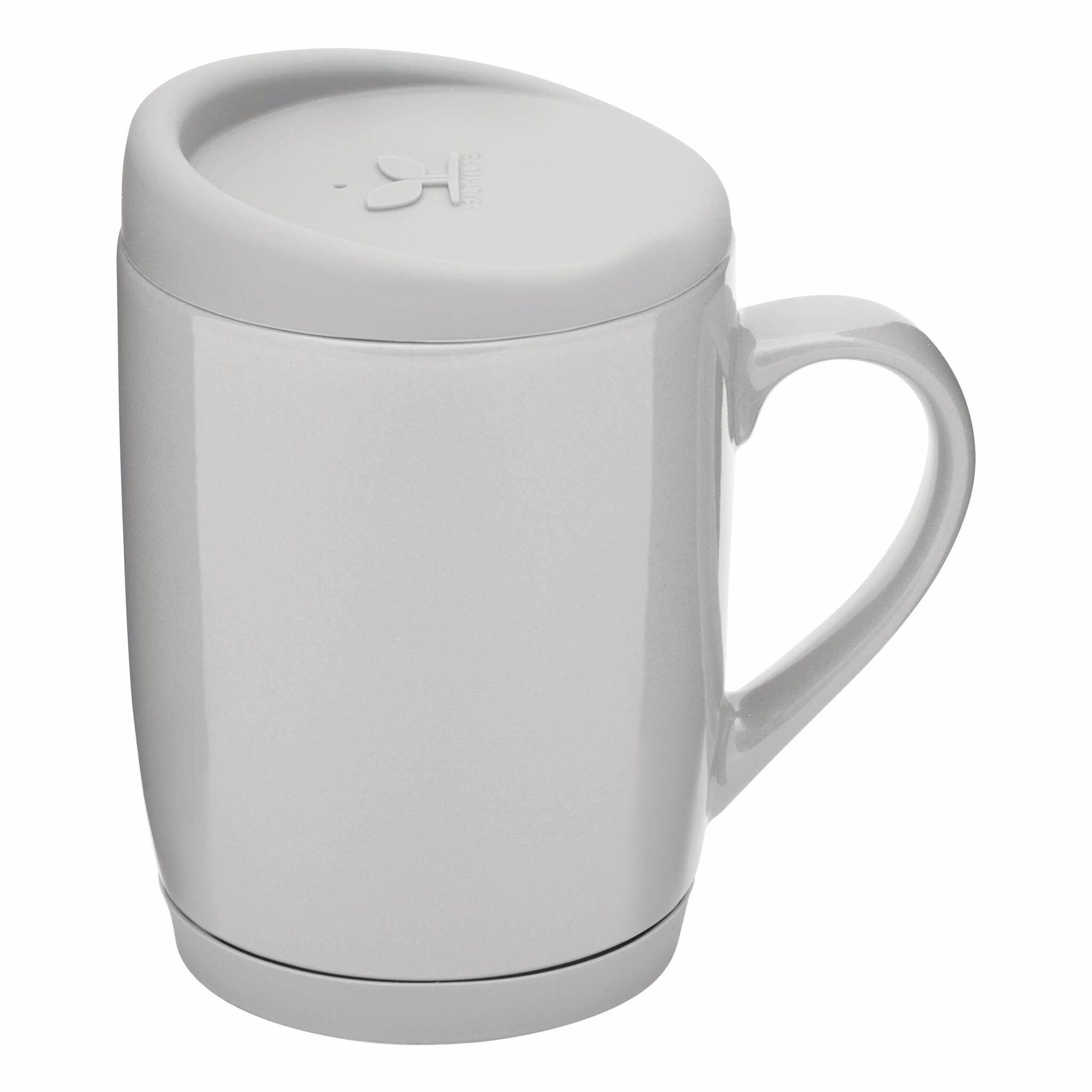 Керамическая кружка EASY DAY со съемной силиконовой подставкой и силиконовой крышкой, предохраняющей от проливания, вместимость ок. 350 ml, в белой коробке