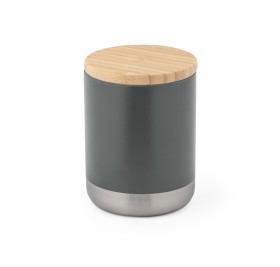 Чашка из нержавеющей стали с вакуумной изоляцией и двойным корпусом, с бамбуковой крышкой с силиконовым уплотнением для дополнительной защиты. Чашка вмещает до 370 мл и сохраняет напитки горячими в течение 5.5 часов и холодными в течение 24 часов. Эта чашка имеет порошковое покрытие, которое придает ей большую долговечность и прочность. Поставляется в картонной коробке. диаметр 80 x 106 мм