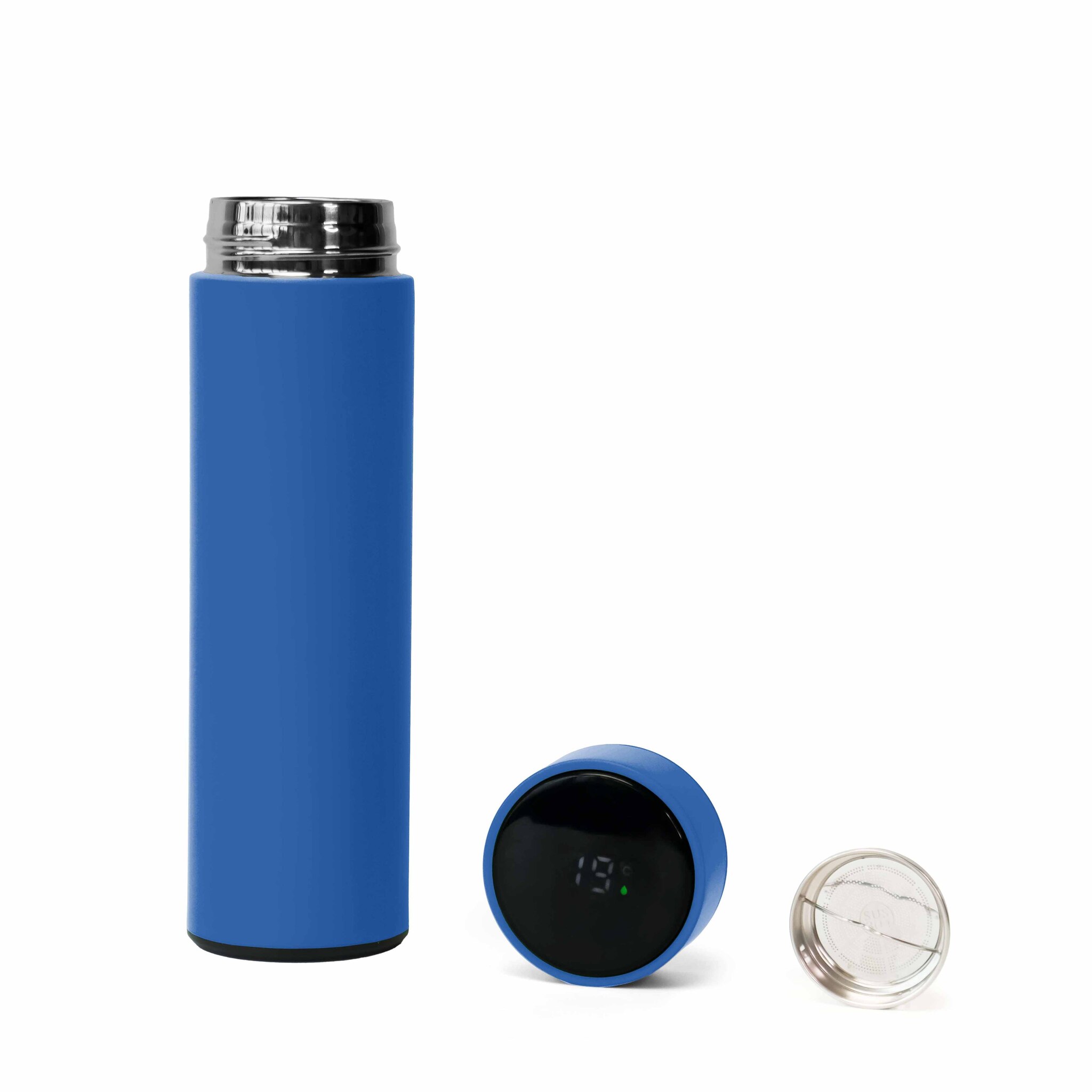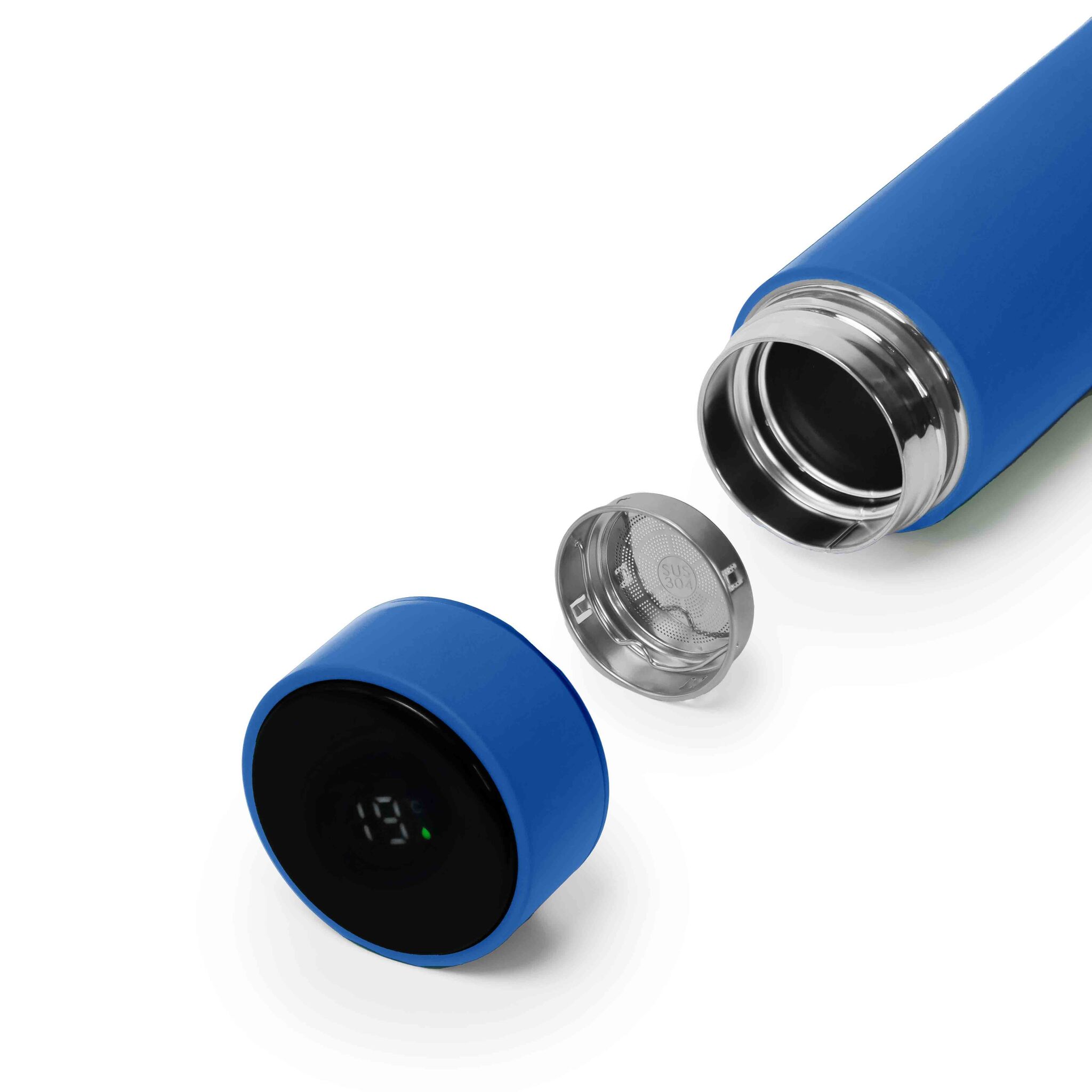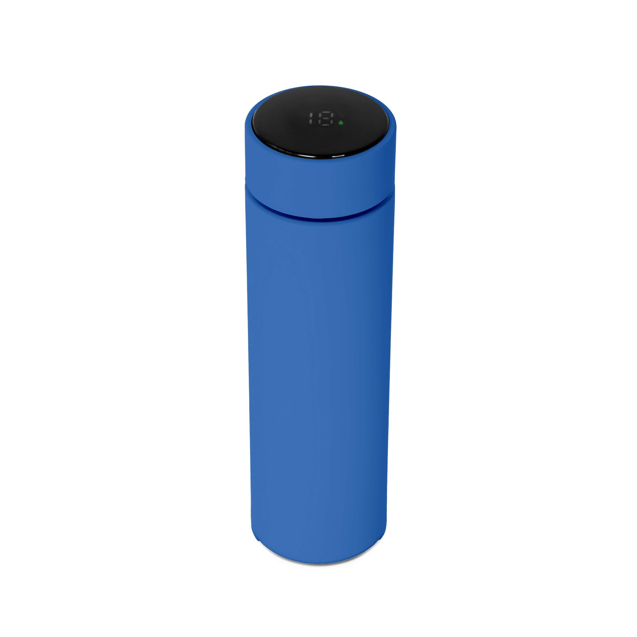 Термос из нержавеющей стали, покрытый цветным soft touch, с крышкой, в которой встроен термометр и LED дисплей, показывающий температуру внутри термоса. Объем: 500 мл. Упаковка: каждый термос в крафт коробке.
