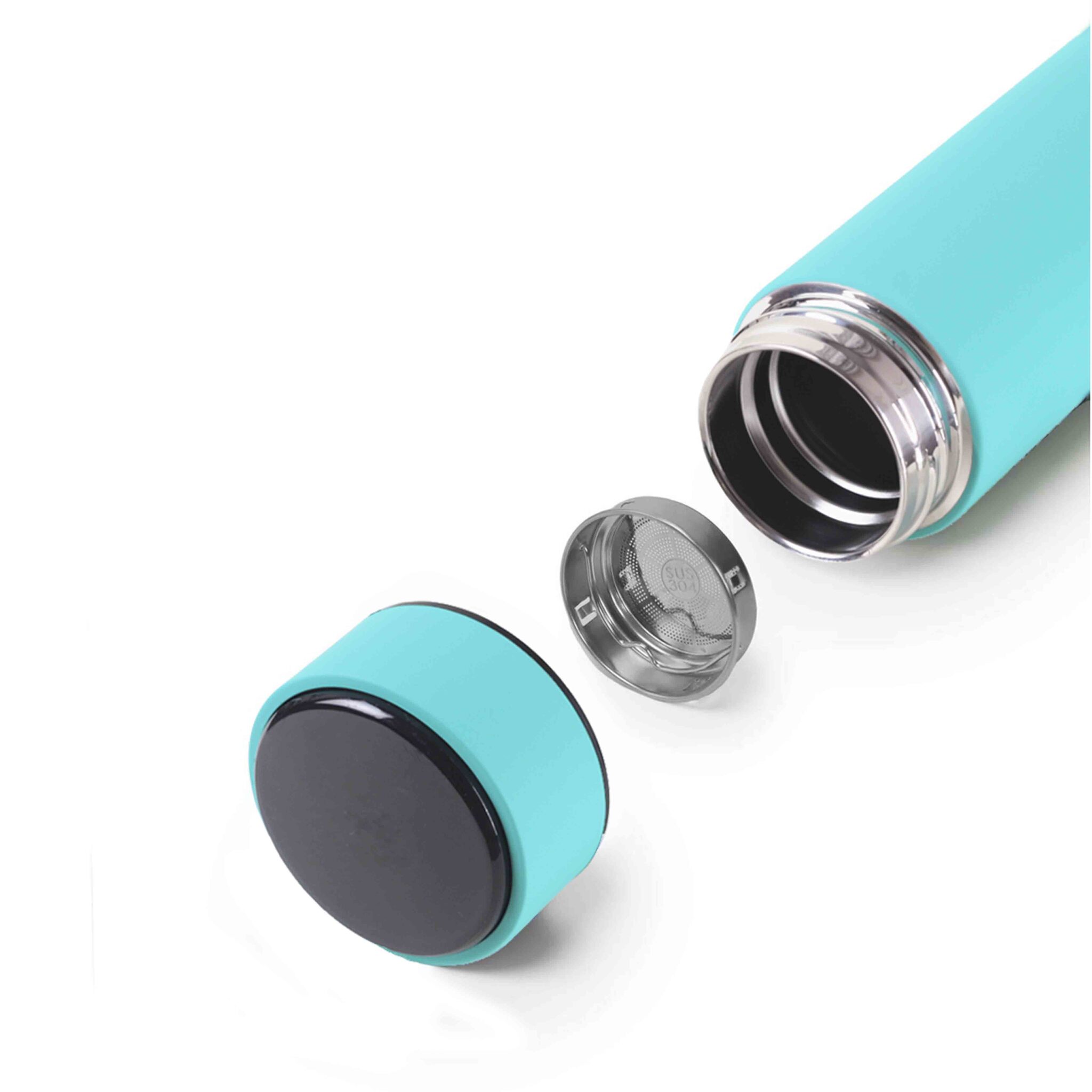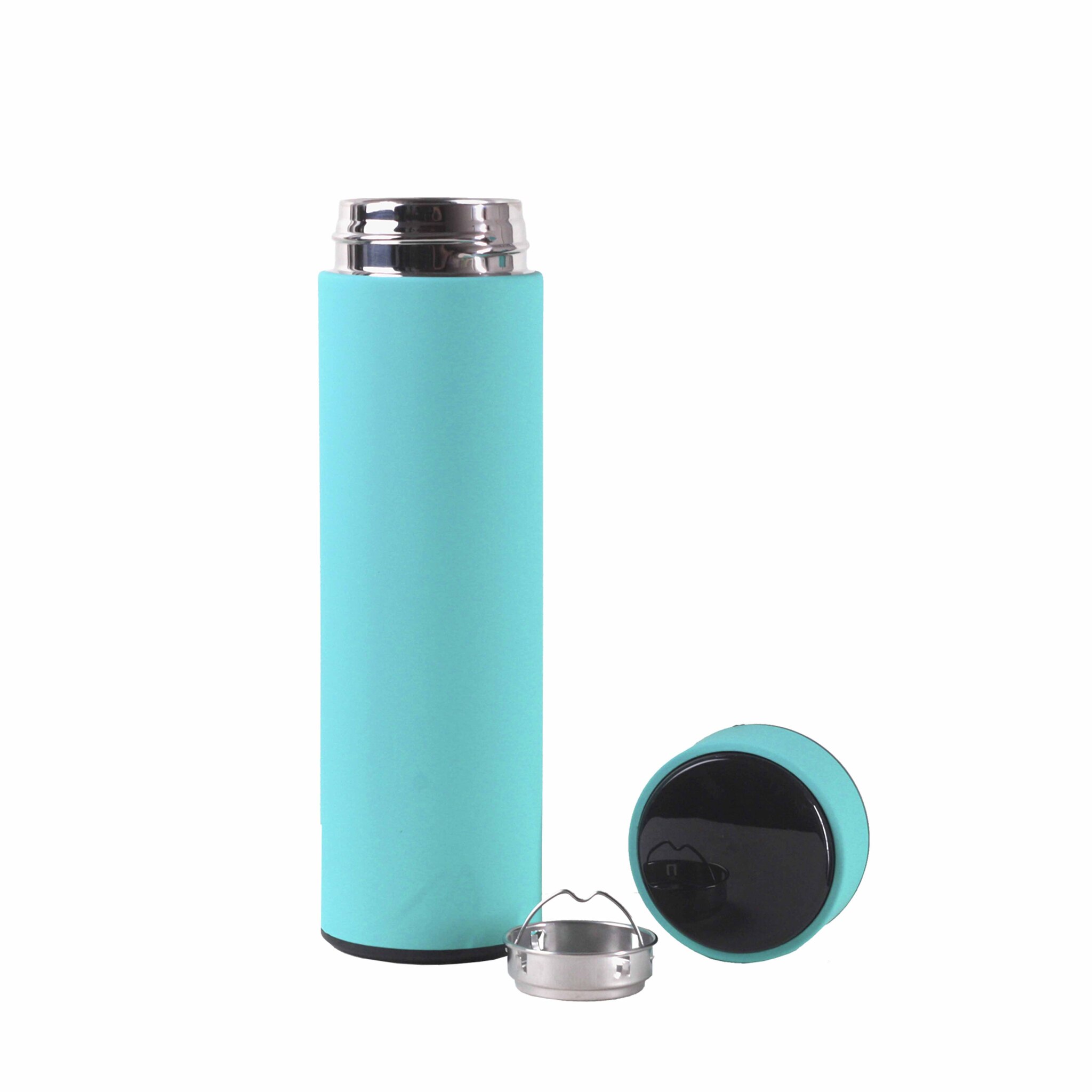 Термос из нержавеющей стали, покрытый цветным soft touch, с крышкой, в которой встроен термометр и LED дисплей, показывающий температуру внутри термоса. Объем: 500 мл. Упаковка: каждый термос в крафт коробке.