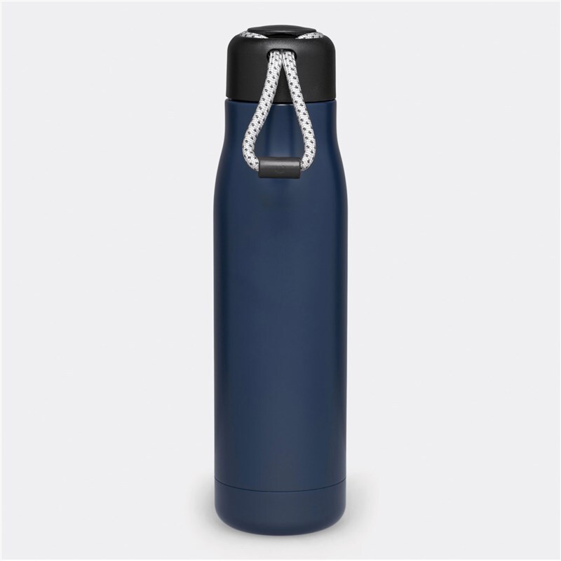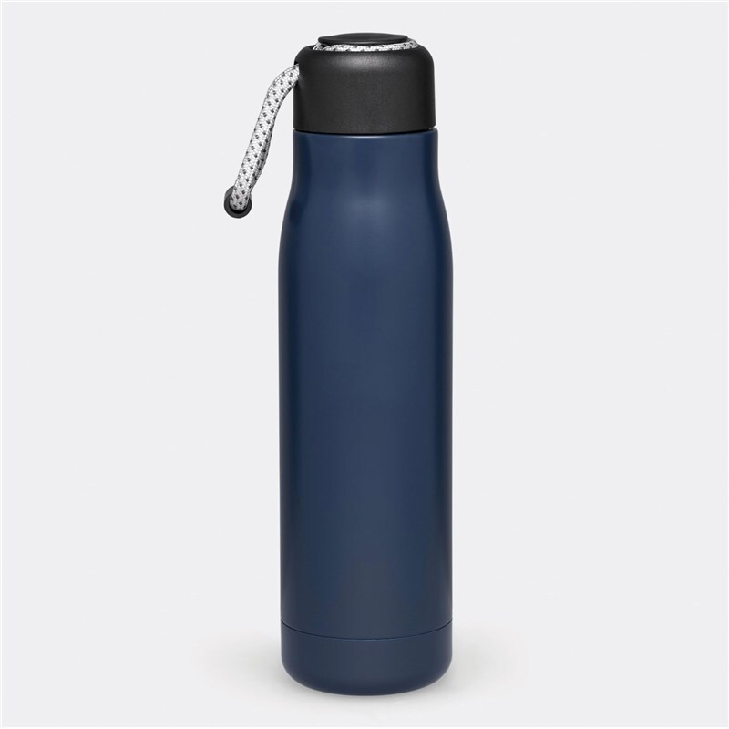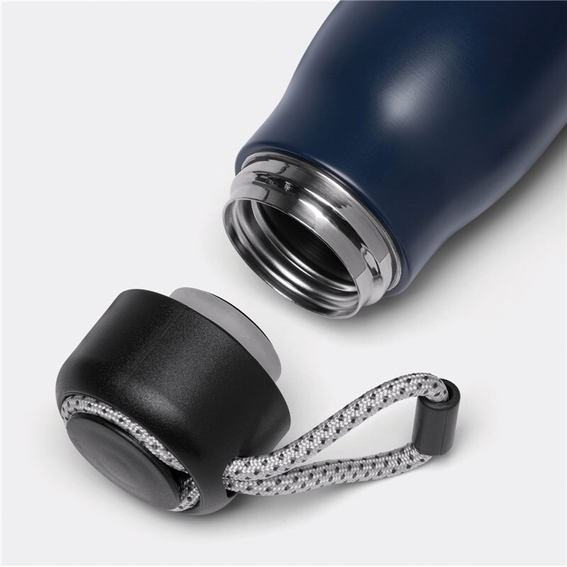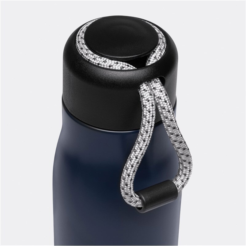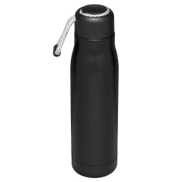 Вакуумная бутылка для питья ROBUSTA, с двойными стенками: внутри и снаружи из нержавеющей стали, завинчивающаяся черная крышка с декоративным ремнем для переноски, емкость: ок. 500 мл, сохраняет тепло ок. 8 часов и холод до 12 часов.