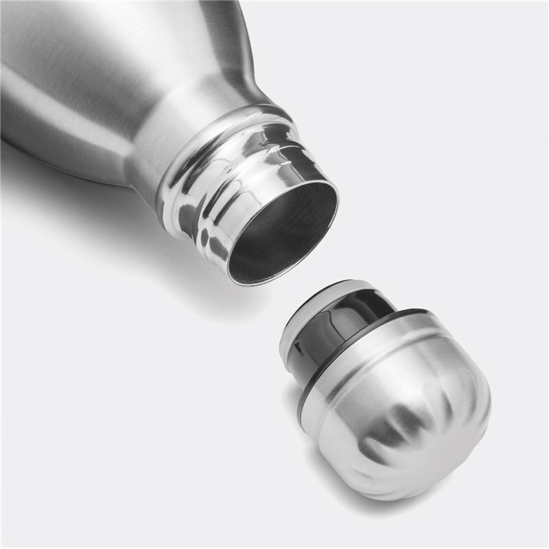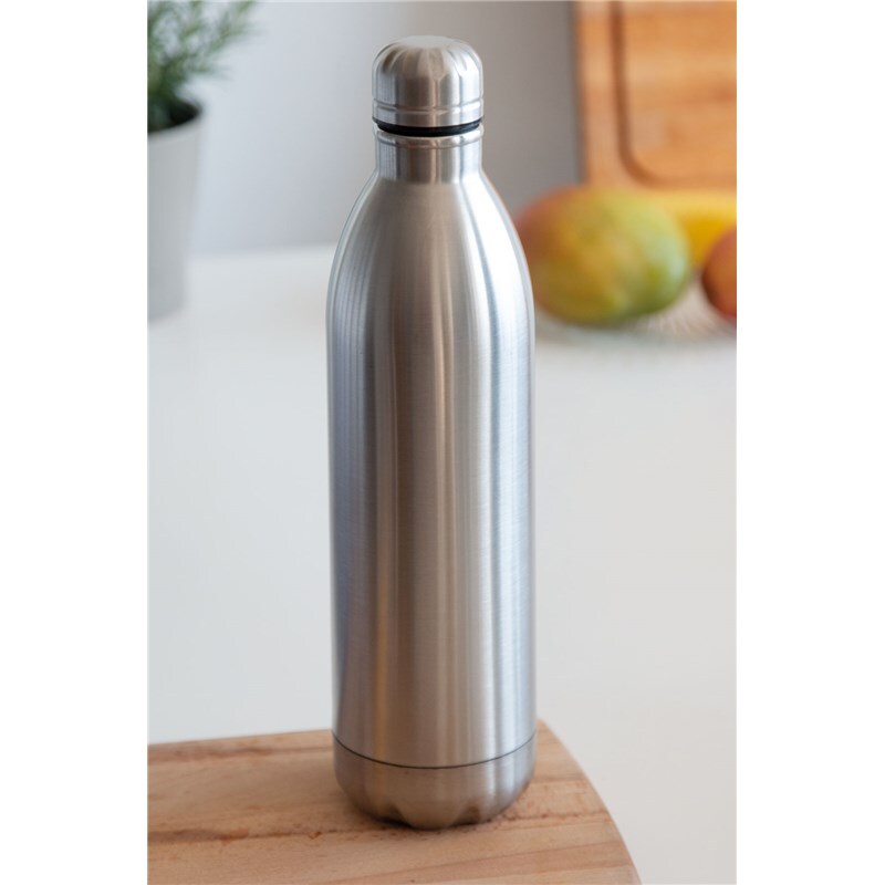Вакуумная бутылка JUMBO TASTE с двойными стенками: изготовлена из нержавеющей стали снаружи и внутри, серебристая крышка с защитной завинчивающейся крышкой, емкость: около 1000 мл, сохраняет тепло около 8 часов, а холод до 12 часов.