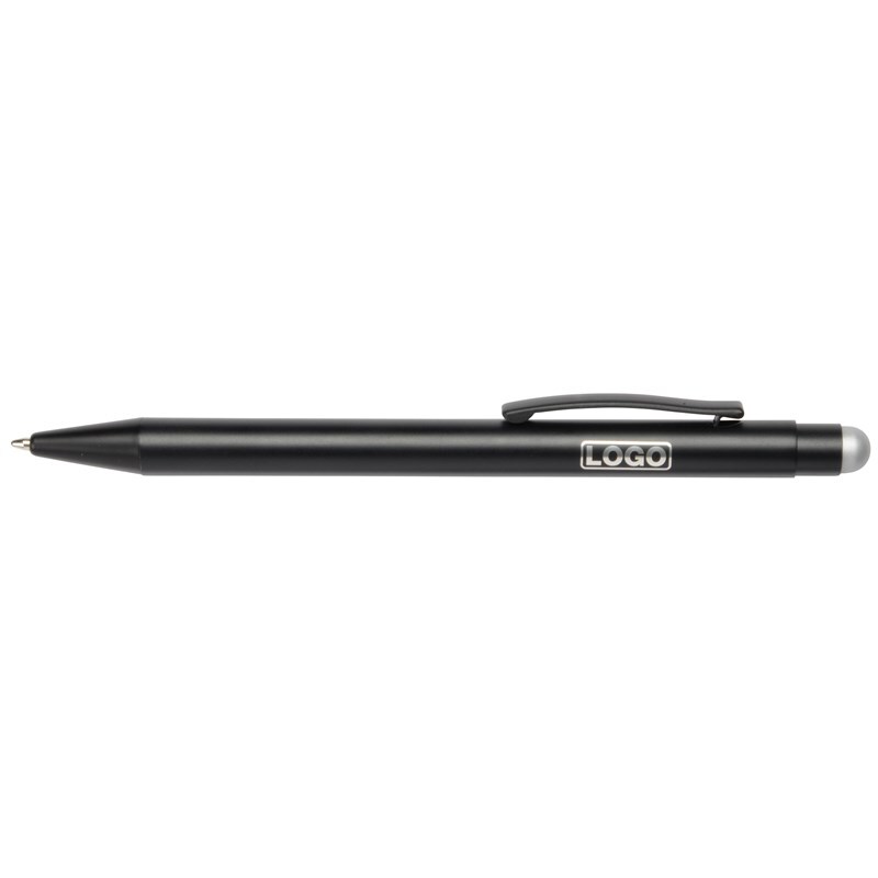 Алюминиевая шариковая ручка BLACK BEAUTY, с большим наполнителем, стилусом для сенсорных экранов, матовая поверхность с цетной ocновой для гравировки, соответствующей цвету стилуса, синие чернила