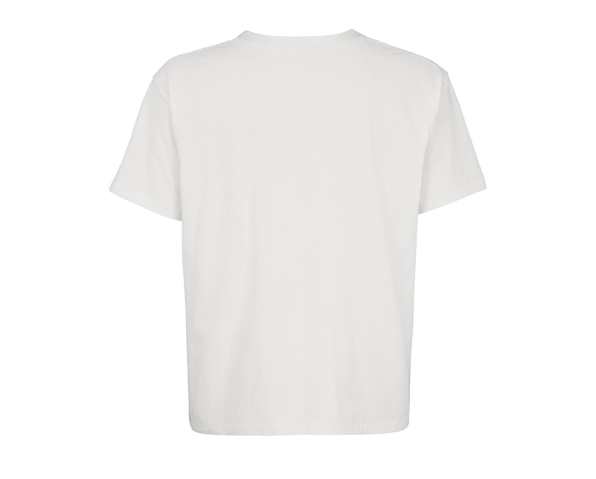 Круглая горловина с отделкой трикотажной резинкой, полая, крой оверсайз, приспущенные плечи, подкладка на горловине и плечах.