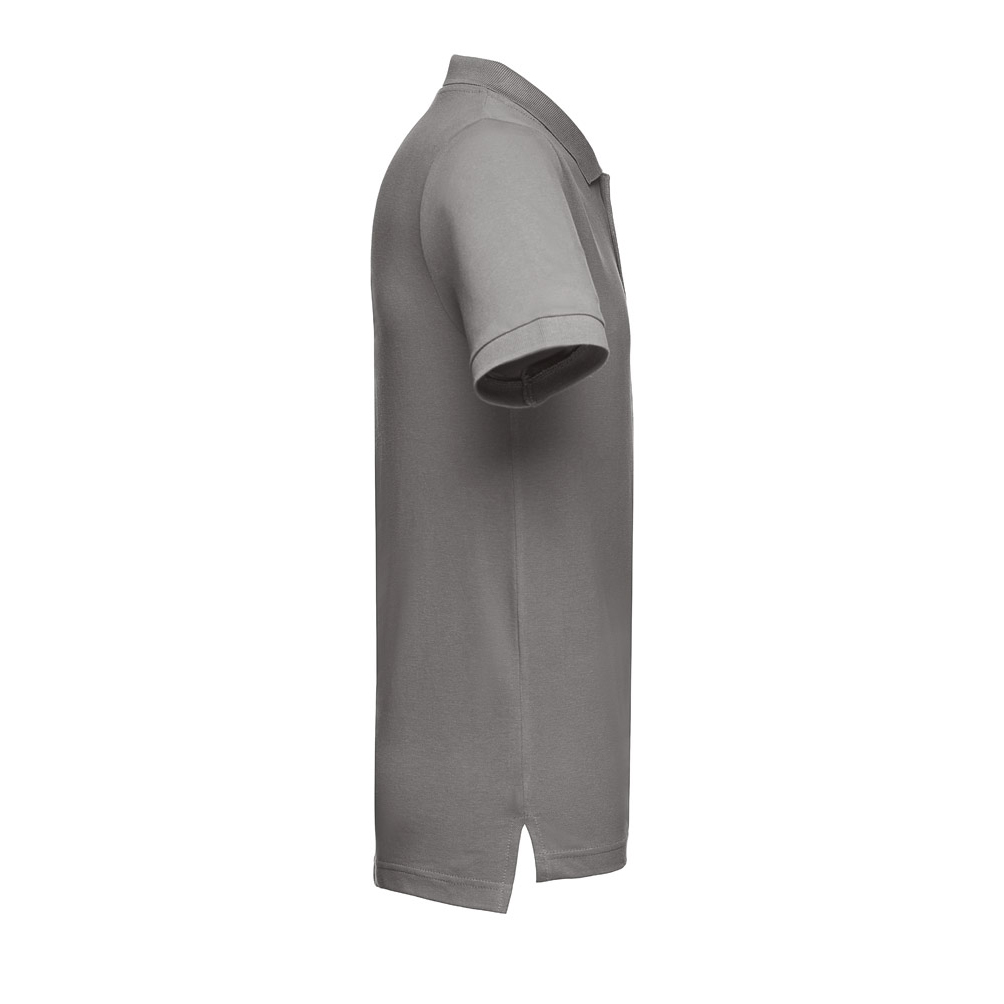 Мужское поло. Трикотаж пике 100% хлопок: 195 г/м². Манжеты и воротник на резинке. Укрепляющая лента на воротнике и планка c 3 пуговицами в тон. Нижняя часть с разрезами. Запасная пуговица на внутреннем шве. Завернутый шов внизу