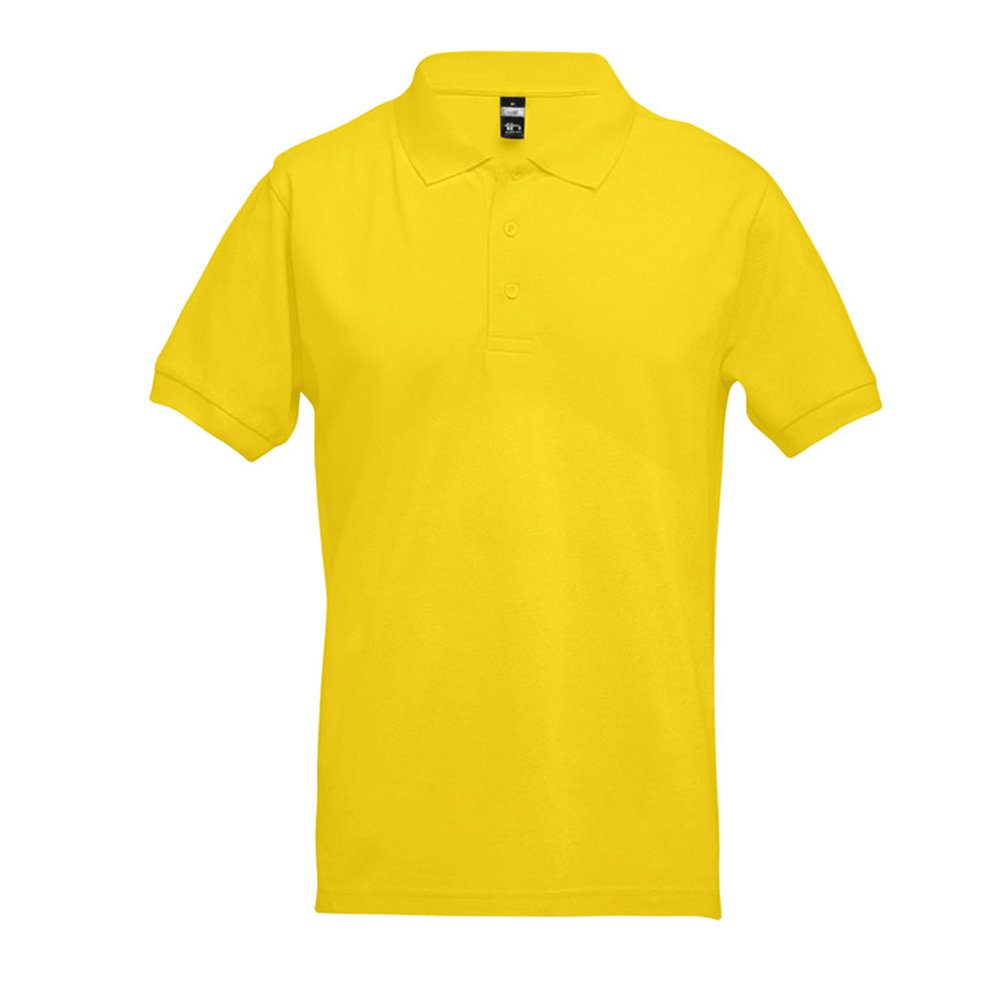 Мужское поло. Трикотаж пике 100% хлопок: 195 г/м². Манжеты и воротник на резинке. Укрепляющая лента на воротнике и планка c 3 пуговицами в тон. Нижняя часть с разрезами. Запасная пуговица на внутреннем шве. Завернутый шов внизу