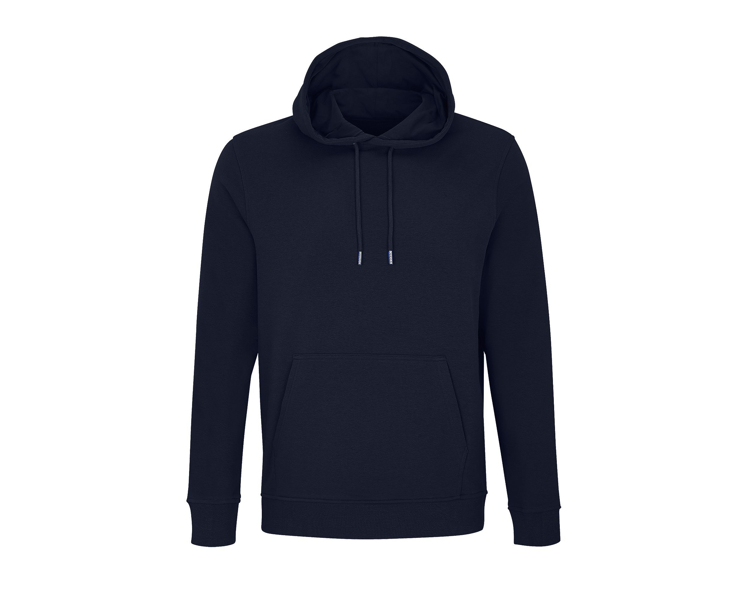 Шитый трикотаж, Втачные рукава, Манжеты и нижняя часть на трикотажной резинке 2x2, Карман-кенгуру, Полумесяц и окантовка из джерси на горловине, Капюшон на подкладке из джерси, Завязки с металлическими наконечниками и люверсами