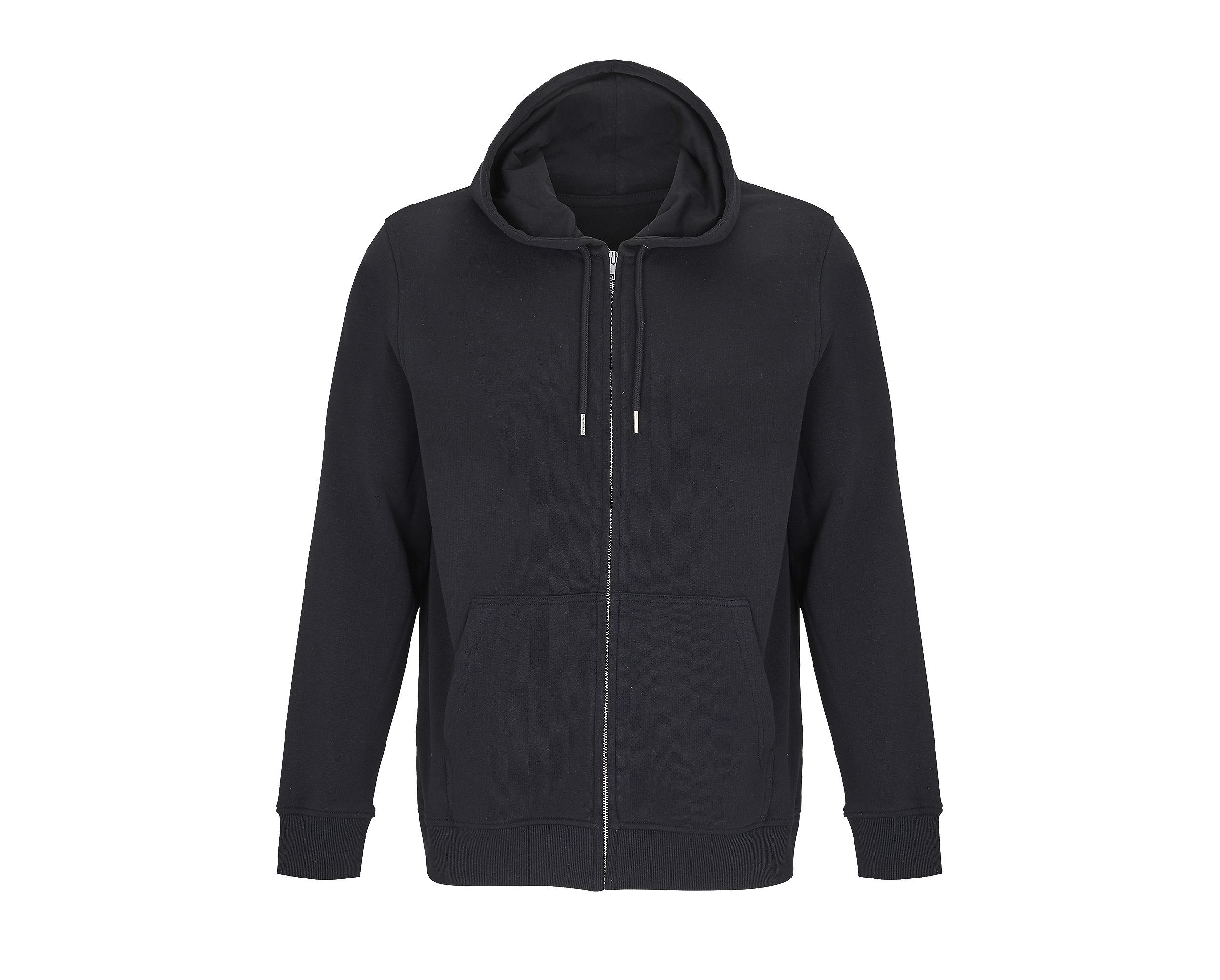 Шитый трикотаж, Втачные рукава, Манжеты и нижняя часть на трикотажной резинке 2x2, Карман-кенгуру, Капюшон на подкладке из джерси, Завязки с металлическими наконечниками и люверсами, Основная застежка на молнии под планкой, Металлические молния и бегунок, Полумесяц и окантовка из джерси на горловине