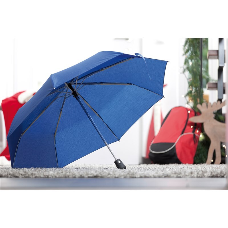 Автоматический ветроустойчивый складной зонт BORA, в чехле соответствующего зонту цвета: тройной металлический стержень, со спицами из алюминия/пластика/стекловолокна и металлическими наконечниками, прорезиненная ручка, полиестер-понджи купол с тефлоновым слоем, обжимная лента на липучке