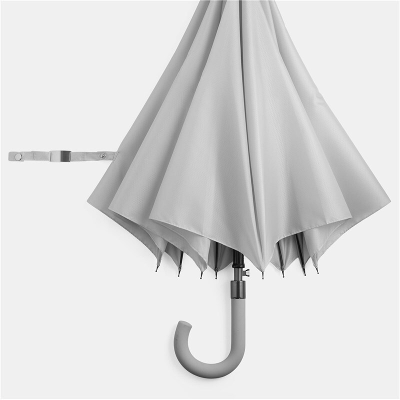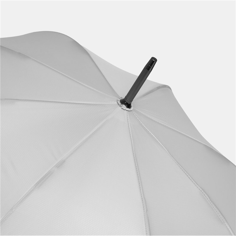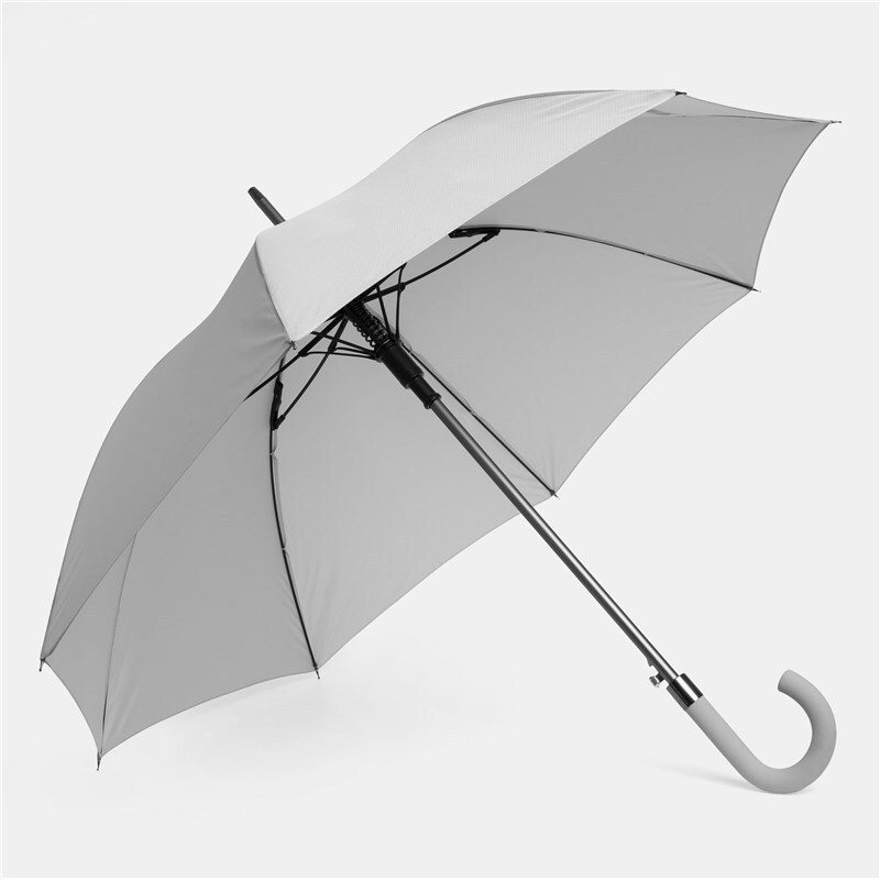 Автоматический зонт JUBILEE алюминиевый стержень, шины из стекловолокна, металлические наконечники подходящего цвета, закругленная ручка с резиновым покрытием, купол из полиэфирной ткани с чехлом с сотовой фактурой, стягивающий ремень с застежкой на кнопку и металлической пластиной для логотипа.