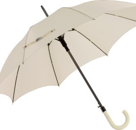 Автоматический зонт JUBILEE алюминиевый стержень, шины из стекловолокна, металлические наконечники подходящего цвета, закругленная ручка с резиновым покрытием, купол из полиэфирной ткани с чехлом с сотовой фактурой, стягивающий ремень с застежкой на кнопку и металлической пластиной для логотипа.